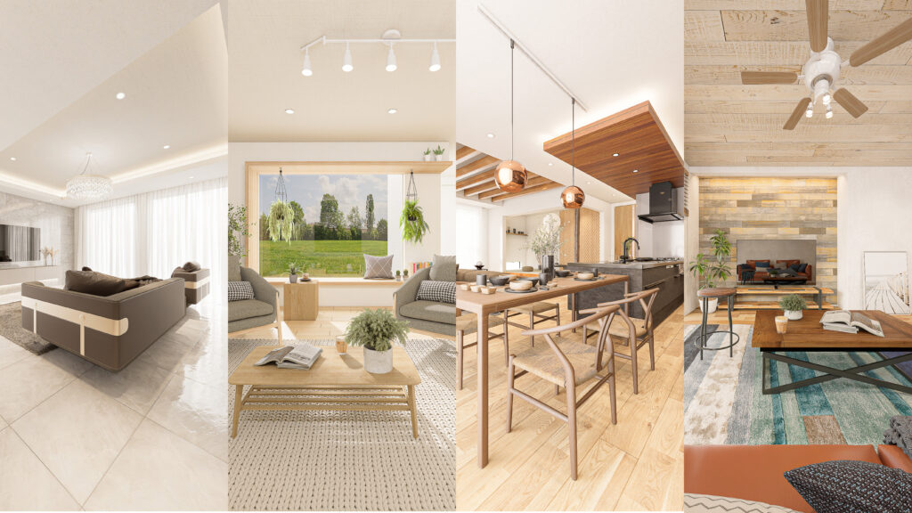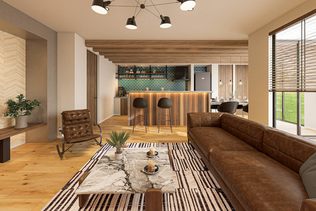 内観パースや外観パースはもちろん、敷地全体や街並みの表現、さらに没入感のあるVRツアーまで対応可能です。