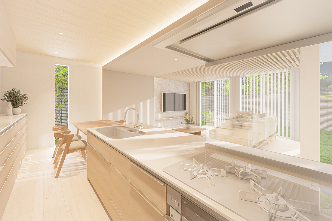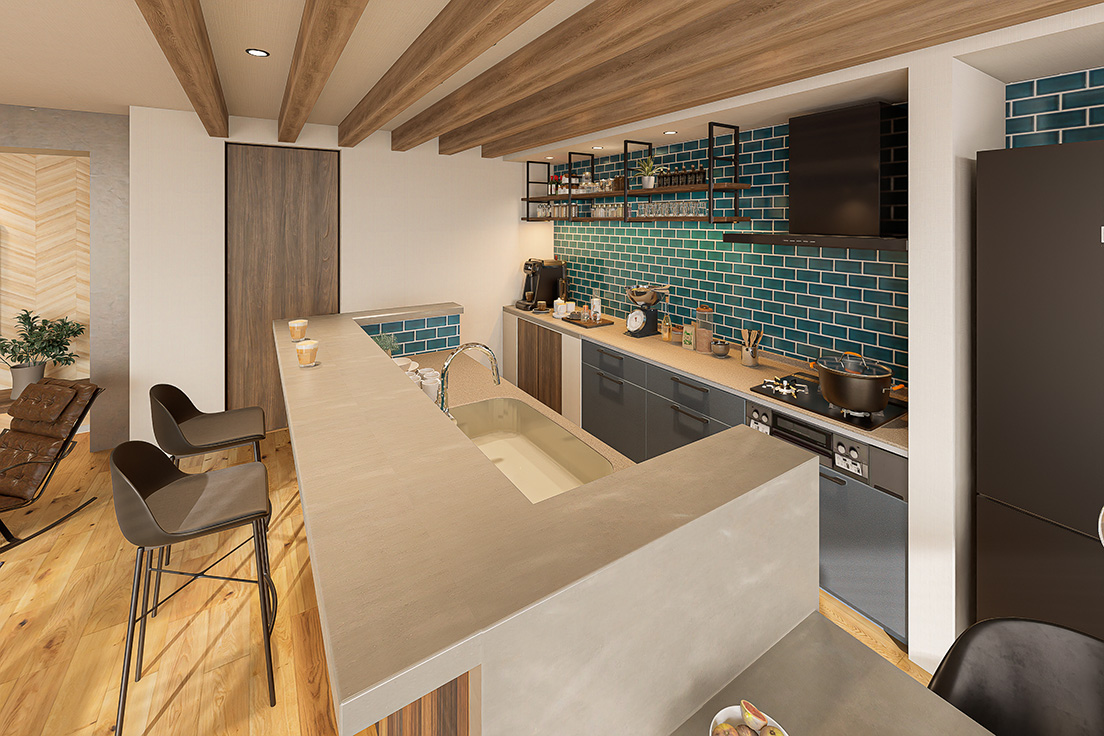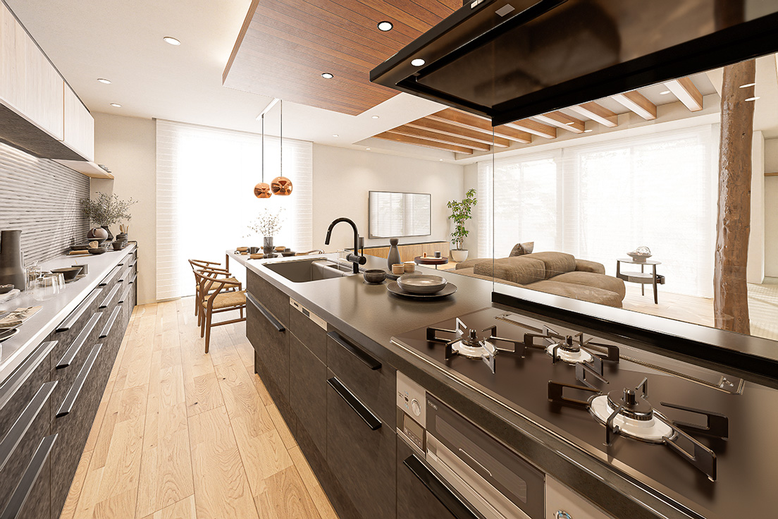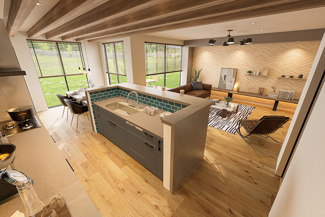購入意欲を喚起するビジュアル提案を得意とするパーセルでは、トレンド性だけでなく、実際の建材データや設備情報を反映したリアリティのある表現を大切にしています。