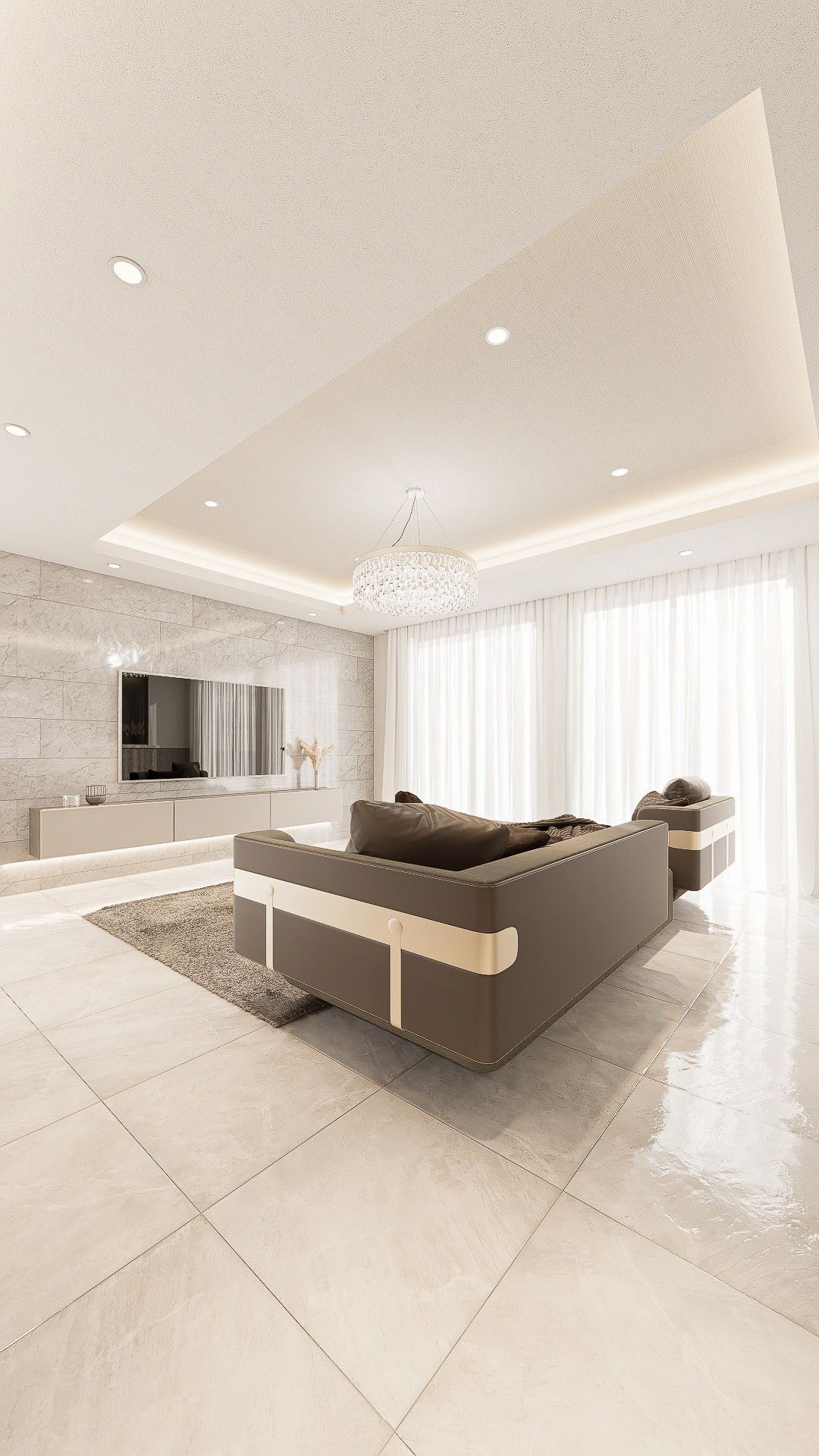上質な素材と照明設計で“自宅にいながらホテルのような寛ぎ”を演出するスタイル。